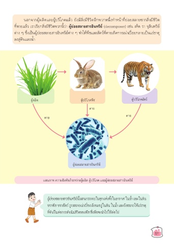 ที่ตายแล้ว เราเรียกสิ่งมีชีวิตพวกนี้ว่า ผู้ย่อยสล�ยส�รอินทรีย์ (decomposer) เช่น เห็ด รา จุลินทรีย์