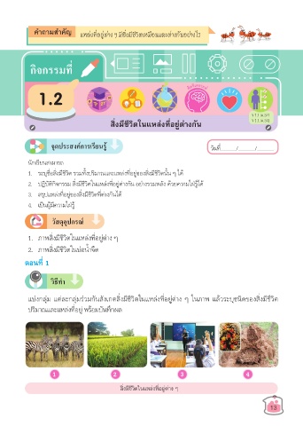 1. ภาพสิ่งมีชีวิตในแหล่งที่อยู่ต่าง ๆ