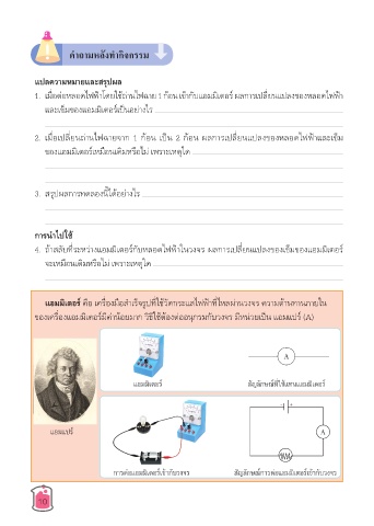 1. เมื่อต่อหลอดไฟฟ้�โดยใช้ถ่�นไฟฉ�ย 1 ก้อน เข้�กับแอมมิเตอร์ ผลก�รเปลี่ยนแปลงของหลอดไฟฟ้�