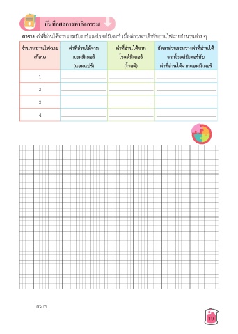 ตาราง ค่�ที่อ่�นได้จ�กแอมมิเตอร์และโวลต์มิเตอร์ เมื่อต่อวงจรเข้�กับถ่�นไฟฉ�ยจำ�นวนต่�ง ๆ