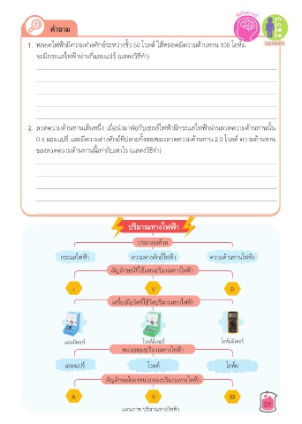 1. หลอดไฟฟ้�มีคว�มต่�งศักย์ระหว่�งขั้ว 50 โวลต์ ไส้หลอดมีคว�มต้�นท�น 100 โอห์ม ว 2.3 ม.3/1