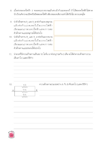 8. เมื่อต่อหลอดไฟฟ้� 2 หลอดแบบขน�นแล้วต่อเข้�กับแบตเตอรี่ ถ้�ไส้หลอดไฟฟ้�ไม่ข�ด
