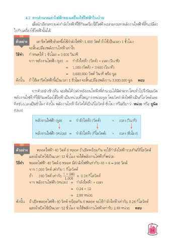 4.2 การคำานวณค่าไฟฟ้าของเครื่องใช้ไฟฟ้าในบ้าน