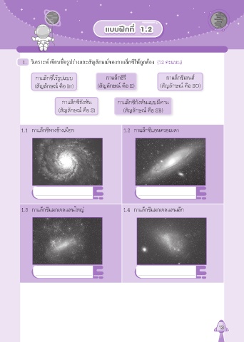 1. วิเคราะห์ เขียนชื่อรูปร่างและสัญลักษณ์ของกาแล็กซีให้ถูกต้อง (12 คะแนน)