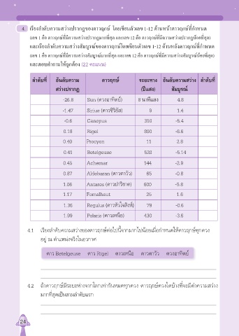 4.1 เรียงลำาดับความสว่างของดาวฤกษ์ต่อไปนี้จากมากไปน้อยเมื่อกำาหนดให้ดาวฤกษ์ทุกดวง