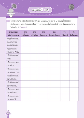 1. ระบุประเภทของกล้องโทรทรรศน์ที่กำาหนด โดยเขียนเครื่องหมาย ✓ ในช่องที่สอดคล้อง