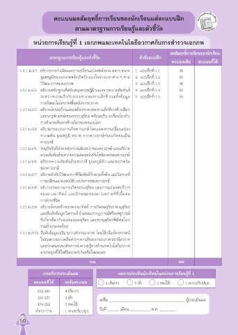 มาตรฐานการเรียนรู้และตัวชี้วัด หัวข้อแบบฝึก