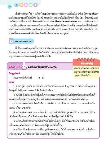 กิจกรรมที่ 1.1 แรงยึดเหนี่ยวระหว่างอนุภาค