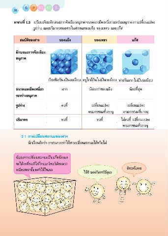 ตารางที่ 1.3 เปรียบเทียบลักษณะการจัดเรียงอนุภาค ขนาดแรงยึดเหนี่ยวระหว่างอนุภาค การเปลี่ยนแปลง