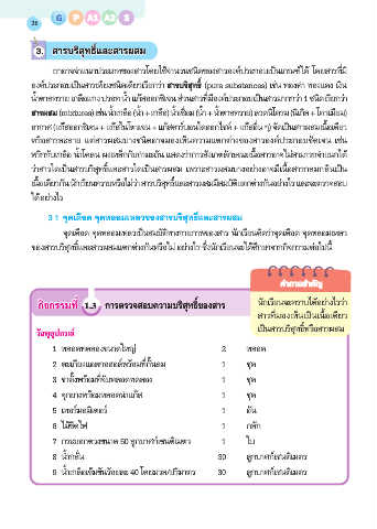 กิจกรรมที่ 1.3 การตรวจสอบความบริสุทธิ์ของสาร นักเรียนจะทราบได้อย่างไรว่า