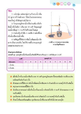 ต้มนํ้ากล่นในข้อ 1 เป็นเวลา 10 นาท วัดอุณหภูมิ