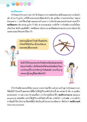 ถ้านักเรียนพิจารณาสมบัติต่าง ๆ ของสาร จะพบว่าสมบัติบางอย่างบ่งบอกถึงรูปร่าง ลักษณะภายนอก