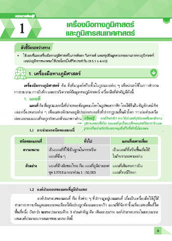 • ใช้แผนท่และเคร่องมือทางภูมิศาสตร์ในการค้นหา วิเคราะห์ และสรุปข้อมูลตามกระบวนการทางภูมิศาสตร ์