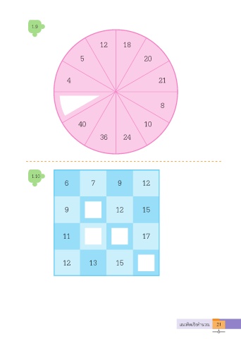 1.9 12 18 5 20 4 21 8 40 10 36 24 1.10 6 7 9 12 9 12 15 11 17 12 13 15 แนวคิดเชิงคำ�นวณ 21