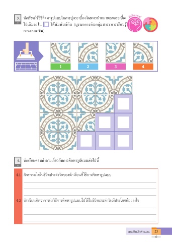 4.1 กิจกรรมใดในชีวิตประจำ�วันของนักเรียนที่ใช้ก�รคิดห�รูปแบบ