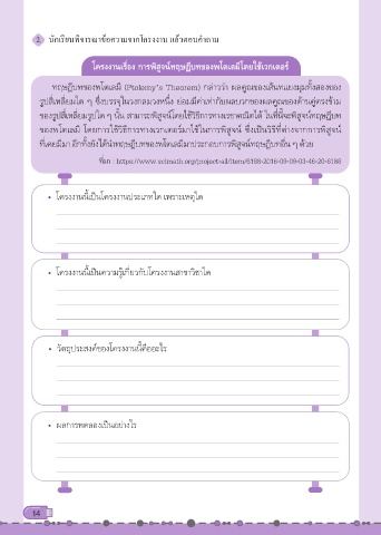 2. นักเรียนพิจารณาข้อความจากโครงงาน แล้วตอบคำาถาม