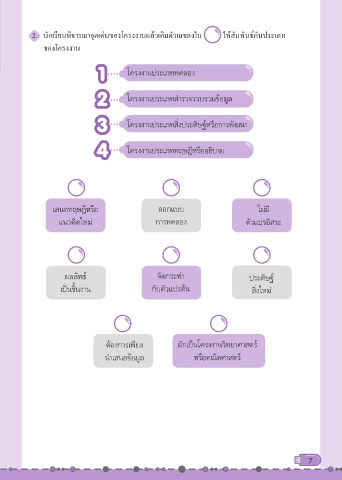 2. นักเรียนพิจารณาจุดเด่นของโครงงานแล้วเติมตัวเลขลงใน ให้สัมพันธ์กับประเภท