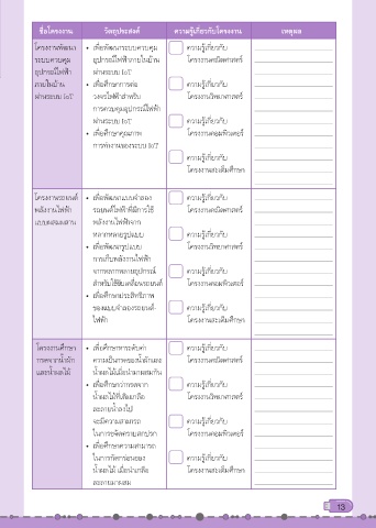 ชื่อโครงงาน วัตถุประสงค์ ความรู้เกี่ยวกับโครงงาน เหตุผล
