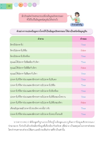 จ�กต�ร�งพบว�มีข้อมูลท่ถูกแปลงให้อยู่ในข้อมูลแบบบูลีนจ�กข้อมูลเชิงพรรณน�