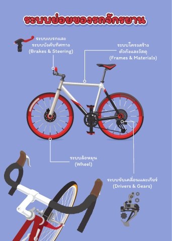 ระบบย่อยของรถจักรยาน ระบบเบรกและ ระบบบังคับทิศทาง ระบบโครงสร้าง (Bra��� & Ste����g) ตัวถังและวัสดุ (Fra��� & M�te����s) ระบบล้อหมุน (Whe��) ่ ระบบขับเคลือนและเกียร์ (Dri���s & Ge�r�)