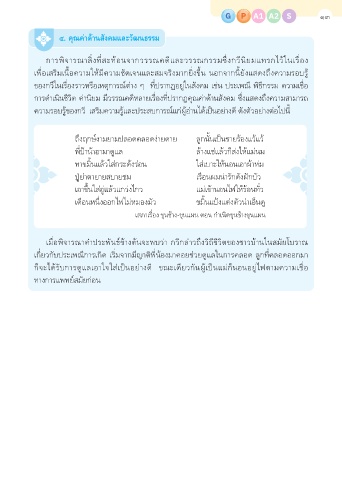 การีพื้ิจัารีณาสื�งทสืะท้อนัจัากวิรีรีณคุดีแล่ะวิรีรีณกรีรีมัซึ่ึ�งกวินัิยมัแทรีกไวิ้ในัเรี�อง