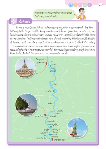 โดียใช้้เรุอแจวล่องไปตุามลำนื้่�าเจ้าพรุะยา ผ่านื้พรุะบรุมมหารุาช้วัง วัดีปรุะโคนื้ปัก โรุงเหล้า ไปถุึงบางจาก
