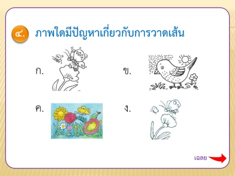 ๔. ภาพใดมีปัญหาเกี่ยวกับการวาดเส้น ก. ข. ค. ง. เฉลย