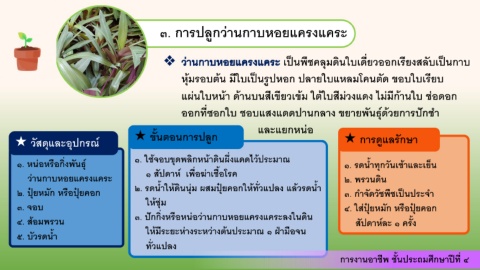 ๔. สอมพรวน ๓. ปกกิ่งหรอหนอวานกาบหอยแครงแคระลงในดิน สปดาห์ละ ๑ คร้ง