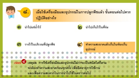 ๘. เมื่อใชเคร่องมือและอปกรณ์ในการปลูกพืชแลว ข้นตอนต่อไปควร