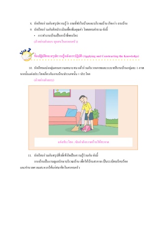 8. นักเรยนร่วมกันสรปความรว่า งานทท าในบ้านและบรเวณบ้าน เรยกว่า งานบ้าน
