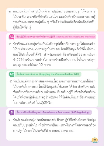 ๓. นักเรียนร่วมกันสรุปเป็นหลักการปฏิบัติเกี่ยวกับการปลูกไม้ดอกหรือ