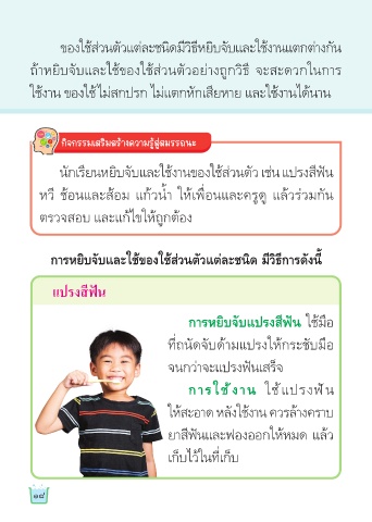 นักเรียนหยิบจับและใช้งานของใช้ส่วนตัว เช่น แปรงสีฟัน