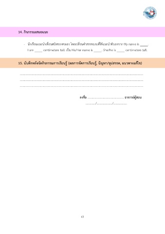 I am _____ centimeters tall. เป็น His/Her name is _____. She/He is _____ centimeters tall.