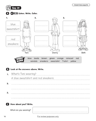 A 9 Listen. Write. Color.