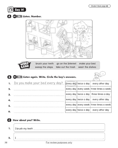 B 34 Listen again. Write. Circle the boy’s answers.