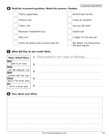 Chip’s School Diary 1. Chip painted in art class on Monday.