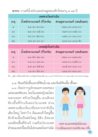 ตาราง เกณฑ์นํ้าหนักและส่วนสูงของเด็กไทยอายุ ๙-๑๒ ปี
