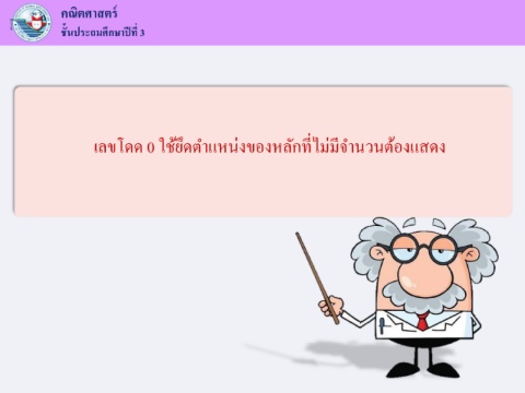 ์ คณิตศาสตร ึ ี ้ ชนประถมศกษาปที่ 3 ั ี ี เลขโดด 0 ใช้ยึดต าแหน่งของหลักทไม่มจ านวนต้องแสดง ่