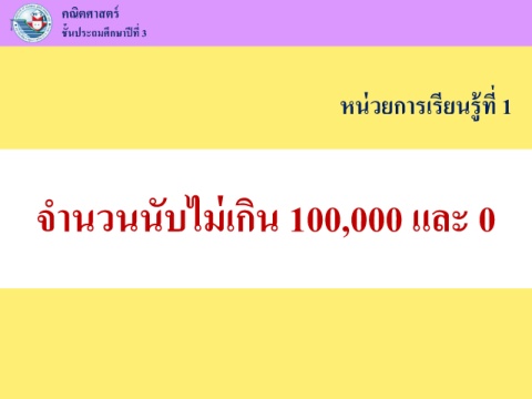 ์ คณิตศาสตร ึ ี ั ชนประถมศกษาปที่ 3 ้ หนวยการเรยนรูที 1 ่ ี ่ ้ จ านวนนบไมเกิน 100,000 และ 0 ั ่
