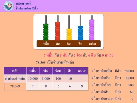 หลัก หมน พัน รอย สบ หนวย 7 ในหลักหมืน มีค่า 70,000