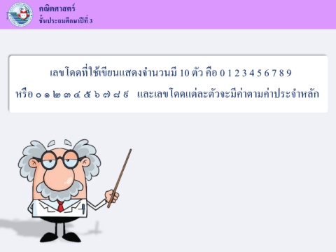 คณิตศาสตร ์ ั ึ ี ชนประถมศกษาปที่ 3 ้ ี่ ี ื เลขโดดทใช้เขยนแสดงจ านวนม 10 ตัว คอ 0 1 2 3 4 5 6 7 8 9 ี ี ื หรอ ๐ ๑ ๒ ๓ ๔ ๕ ๖ ๗ ๘ ๙ และเลขโดดแต่ละตัวจะมค่าตามค่าประจ าหลัก