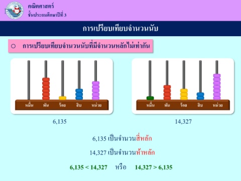 o การเปรยบเทียบจ านวนนบที่มีจ านวนหลักไมเทากัน