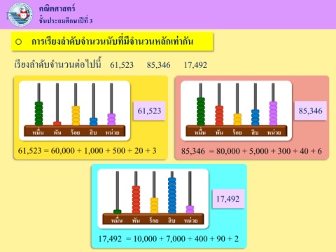 เรยงล าดับจ านวนต่อไปน้ 61,523 85,346 17,492