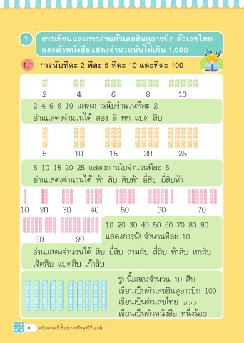 1.1 การนับทีละ 2 ทีละ 5 ทีละ 10 และทีละ 100
