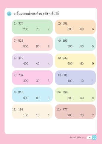 3. วงล้อมรอบค่าของตัวเลขที่ขีดเส้นใต้