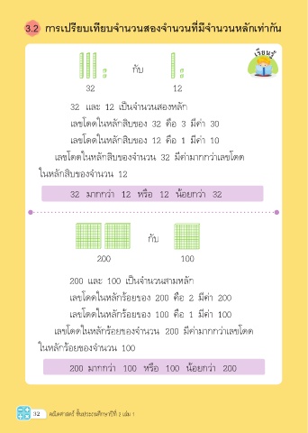 เลขโดดในหลักสิบของจำ�นวน 32 มีค่�ม�กกว่�เลขโดด
