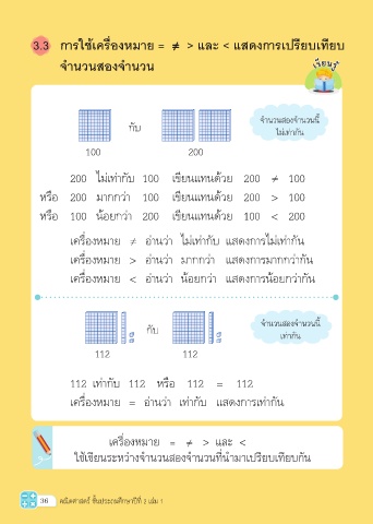 3.3 การใช้เครื่องหมาย = ≠ > และ < แสดงการเปรียบเทียบ