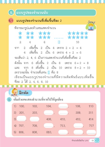 5.1 แบบรูปของจำานวนที่เพิ่มขึ้นทีละ 2