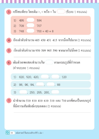 3. เปรียบเทียบ โดยเติม >, < หรือ = ใน (ข้อละ 1 คะแนน)