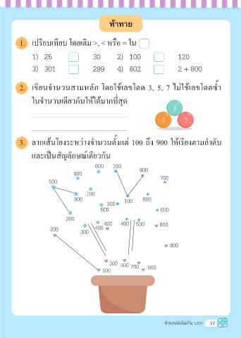 2. เขียนจํานวนสามหลัก โดยใช้เลขโดด 3, 5, 7 ไม่ใช้เลขโดดซ้า